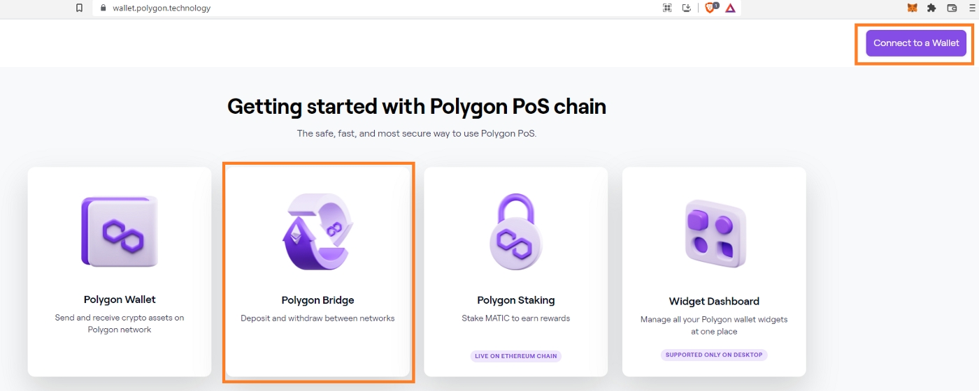 Access the Polygon Wallet, Click the Polygon Bridge through their official link and connect wallet to a Mainnet address with an FNC balance: