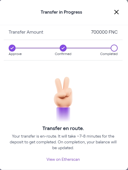 After clicking “Claim sFNC”, the sFNC is sent directly into the users Polygon address. The transactions for claiming sFNC usually will take roughly up to 5 minutes.
